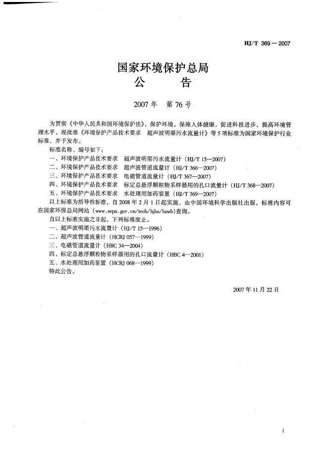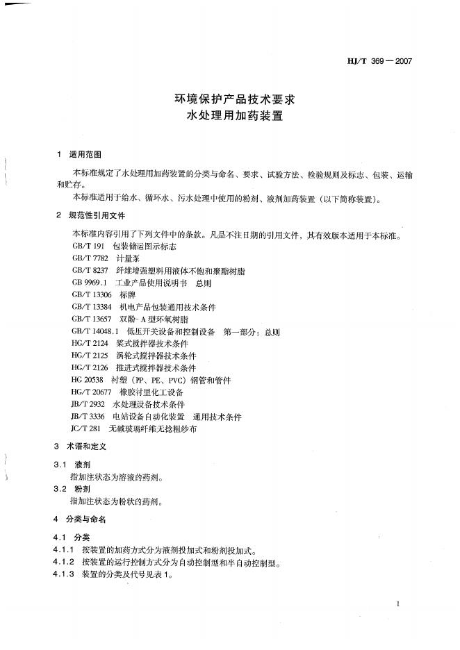 HJ/T 369-2007 环境保护产品技术要求 水处理用加药装置