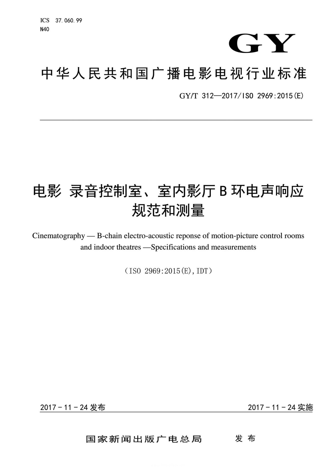 GY/T 312-2017 电影 录音控制室、室内影厅B 环电声响应规范和测量