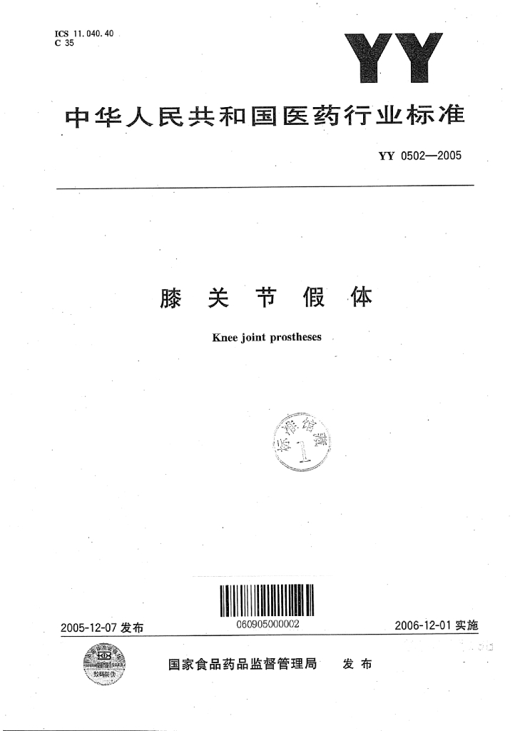 YY 0502-2005 膝关节假体
