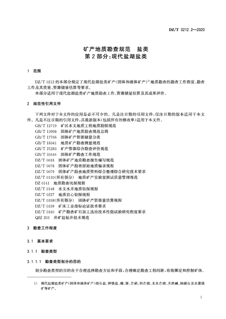 DZ/T 0212.2-2020 矿产地质勘查规范 盐类 第2部分:现代盐湖盐类