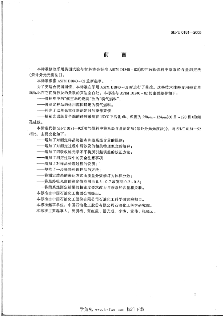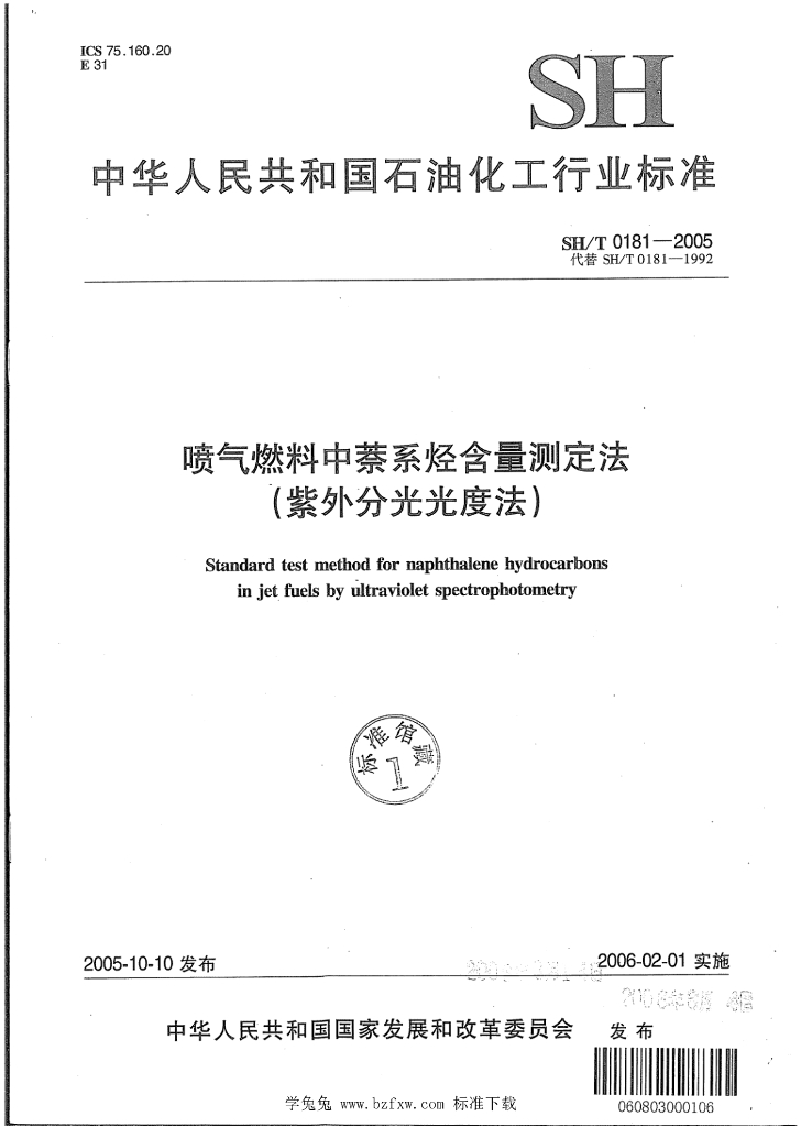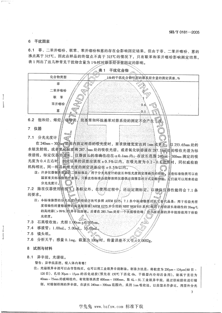 SH/T 0181-2005 喷气燃料中萘系烃含量测定法(紫外分光光度法)