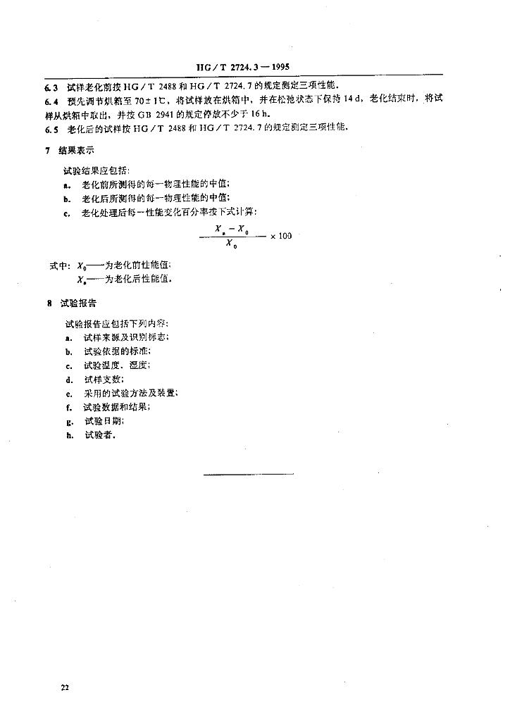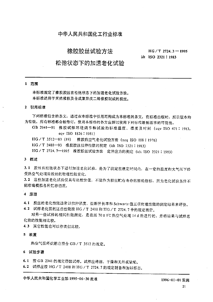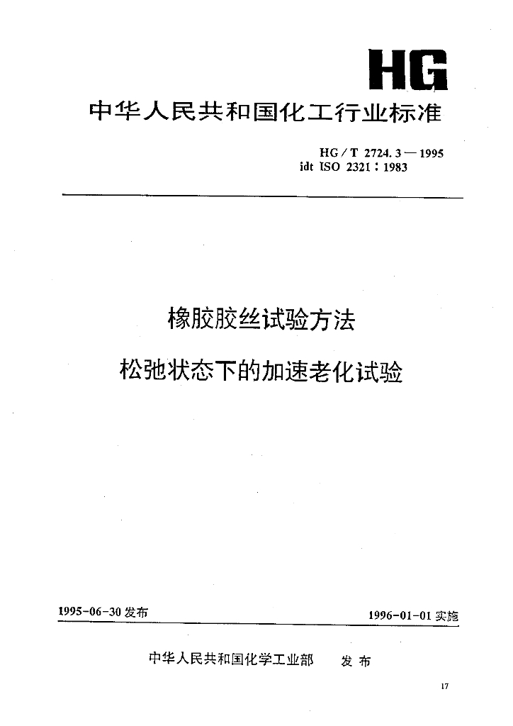 HG/T 2724.3-1995 橡胶胶丝试验方法 松弛状态下的加速老化试验