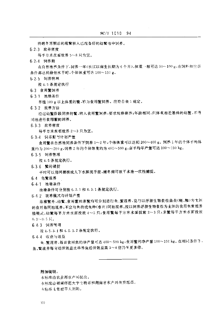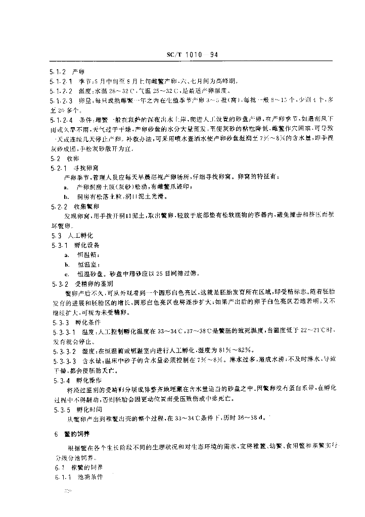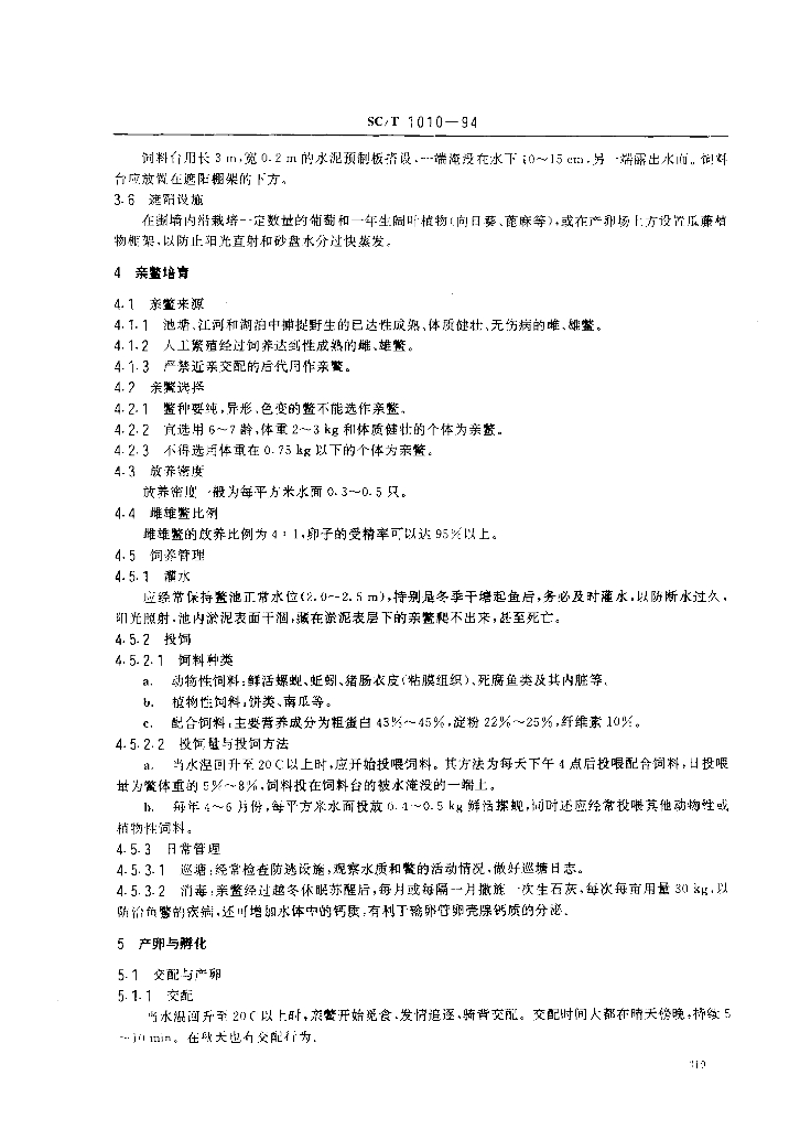 SC/T 1010-1994 中华鳖人工繁殖与饲养技术规程