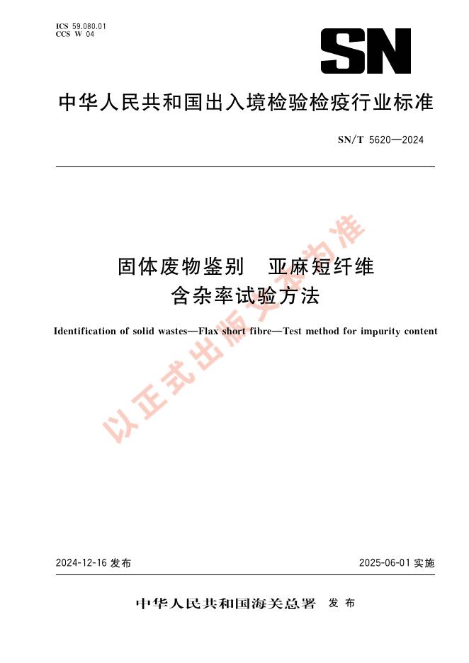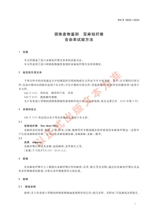 SN/T 5620-2024 固体废物鉴别 亚麻短纤维 含杂率试验方法