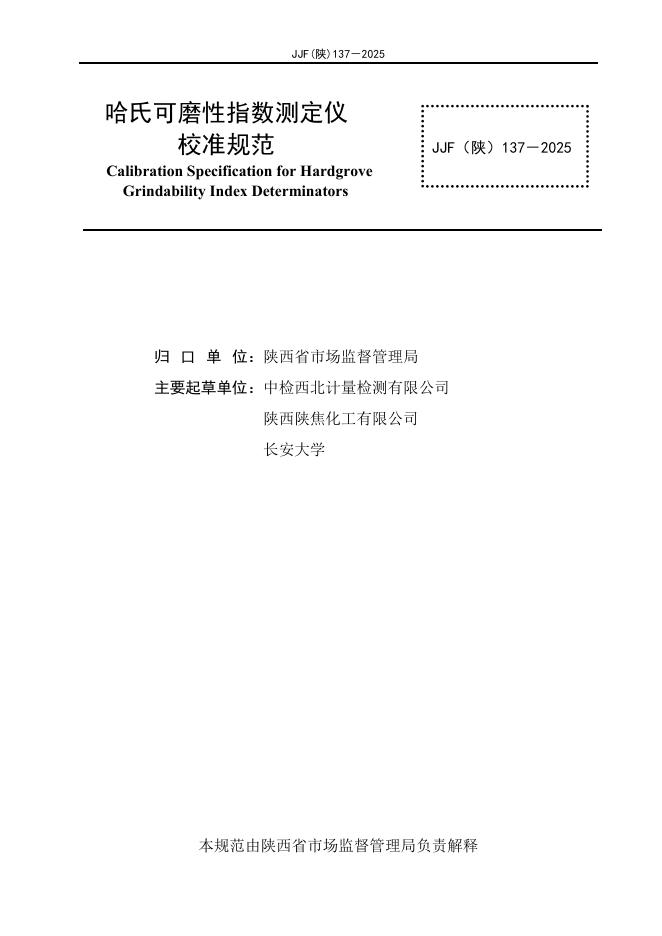 JJF(陕)137-2025 哈氏可磨性指数测定仪校准规范