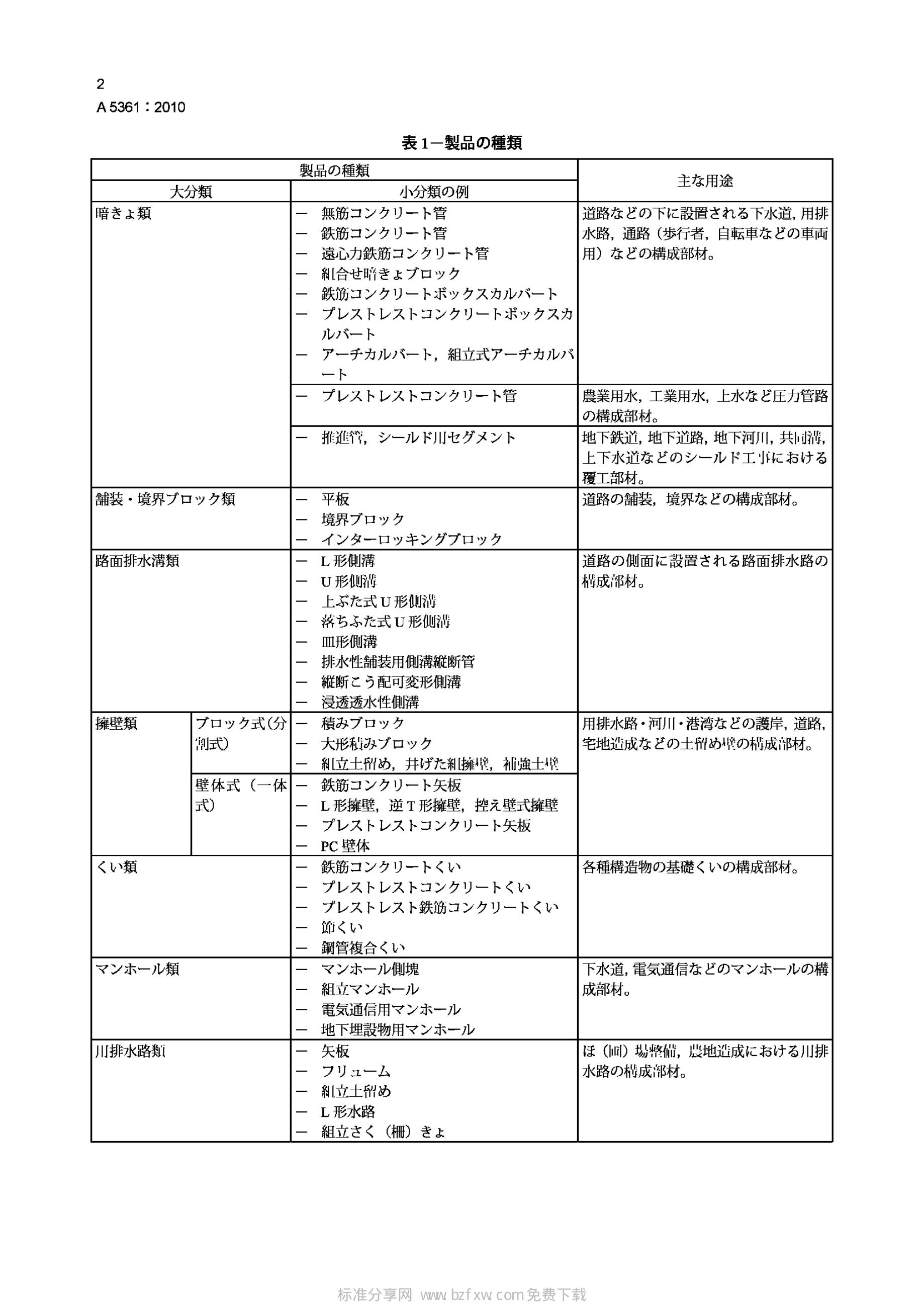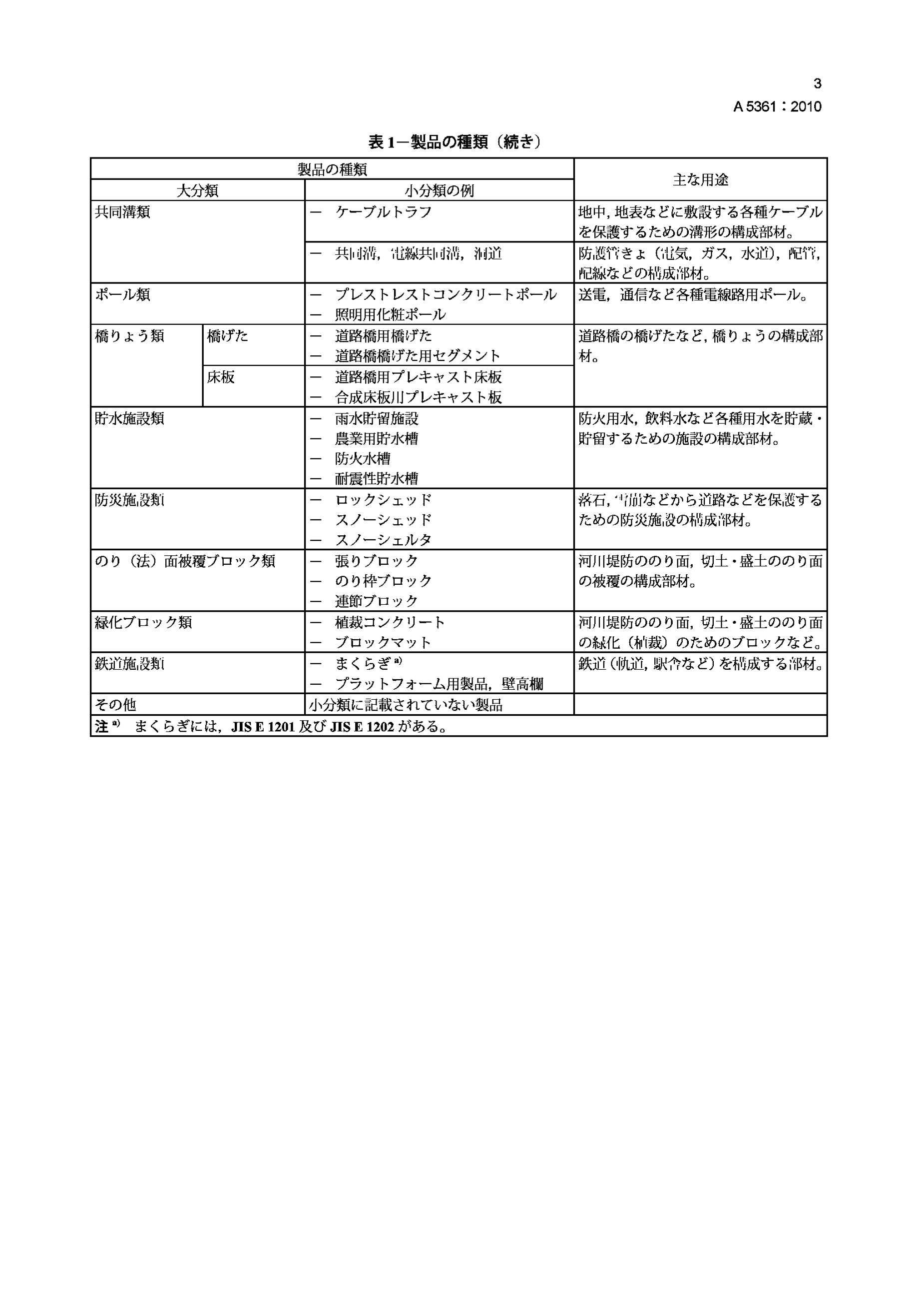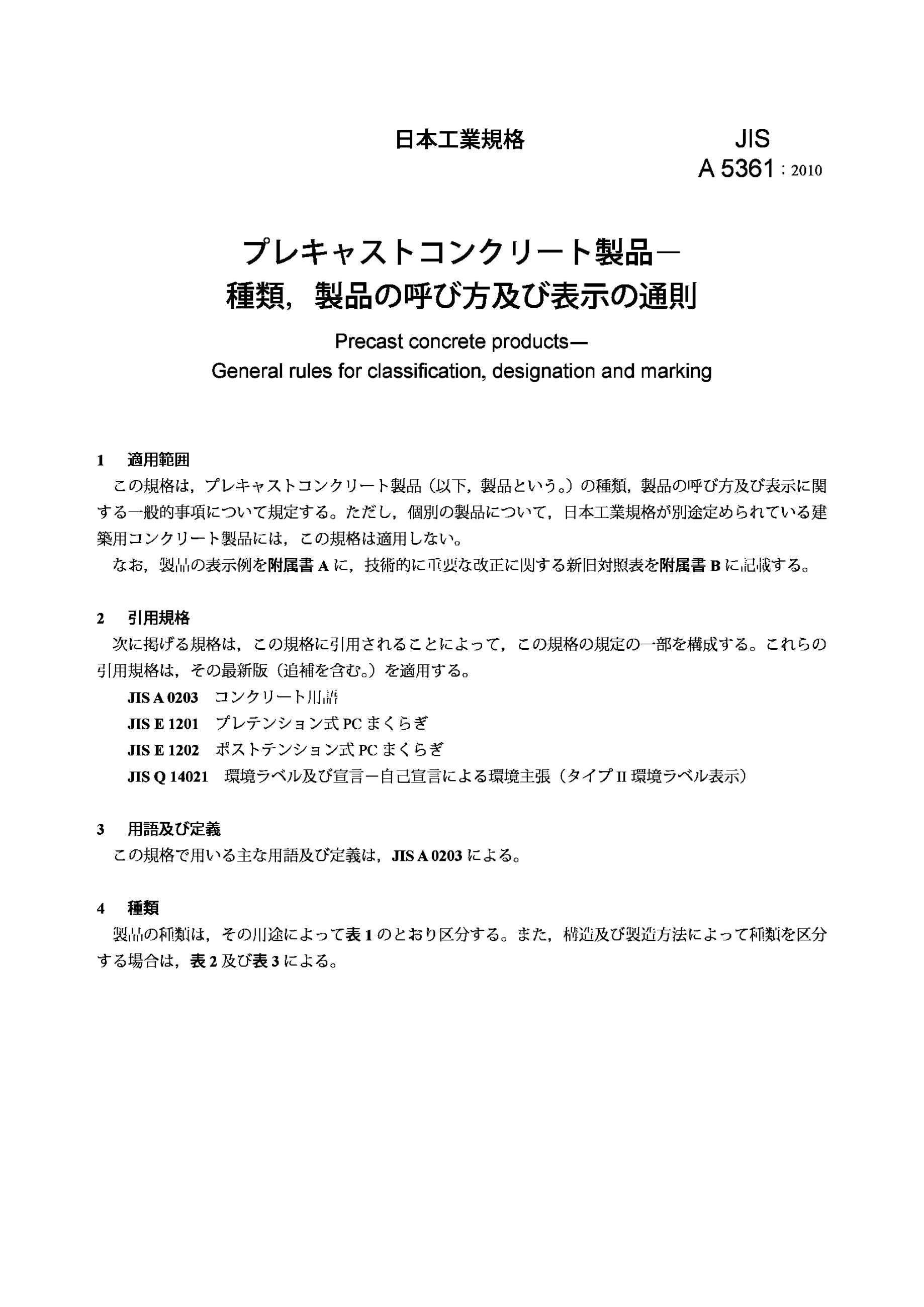 JIS A5361-2010 预制混凝土制品.分级、命名和标记的通用规则