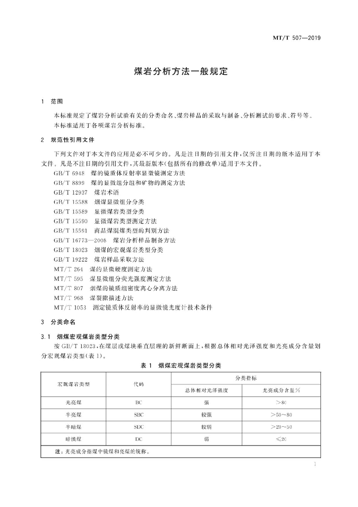 MT/T 507-2019 煤岩分析方法一般规定