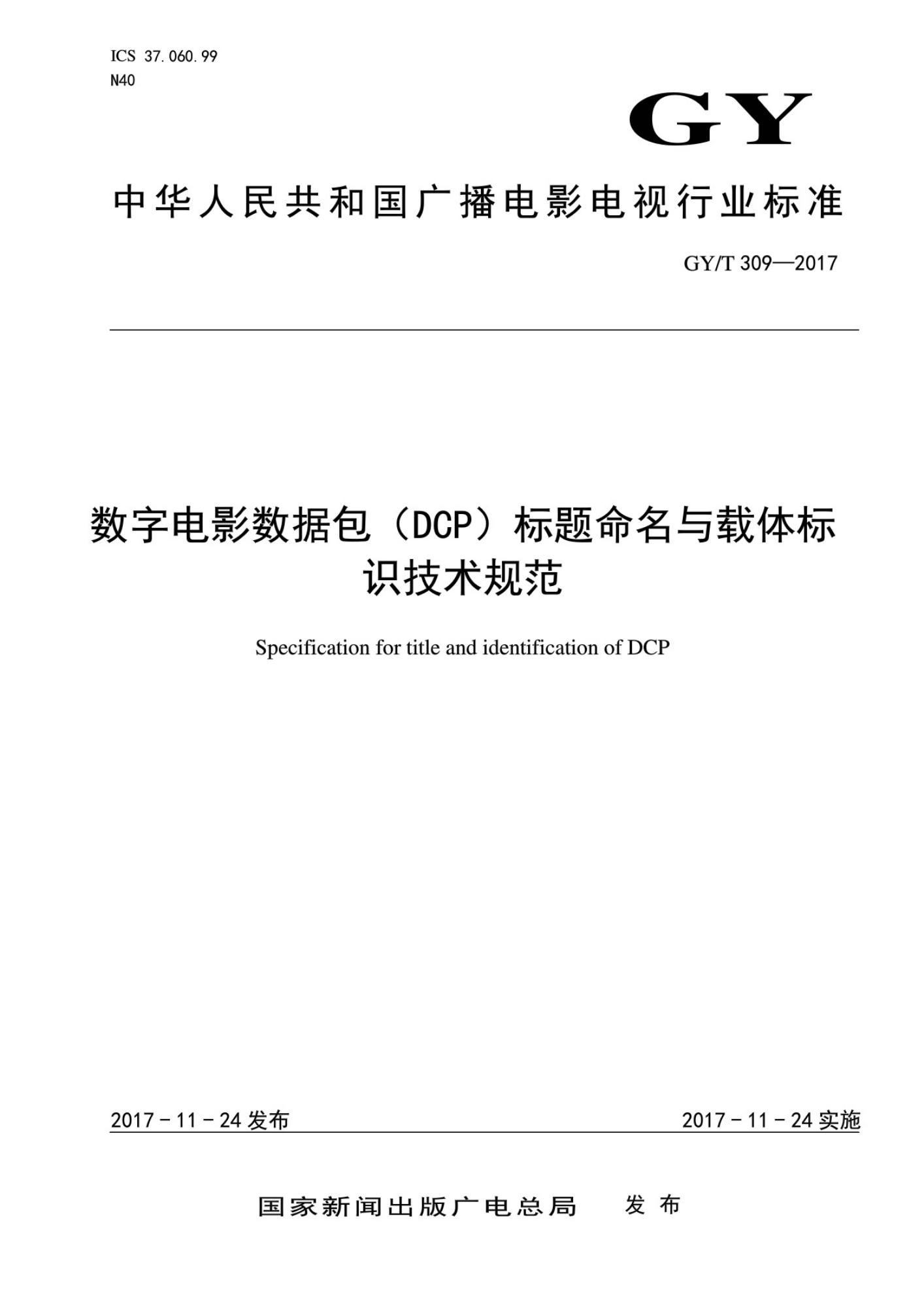 GY/T 309-2017 数字电影数据包(DCP)标题命名与载体标识技术规范