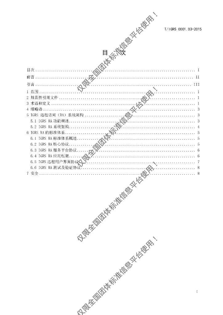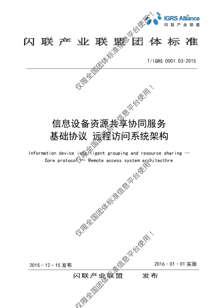 T/IGRS 0001.03-2015 信息设备 资源共享系统服务基础协议 远程访问系统架构