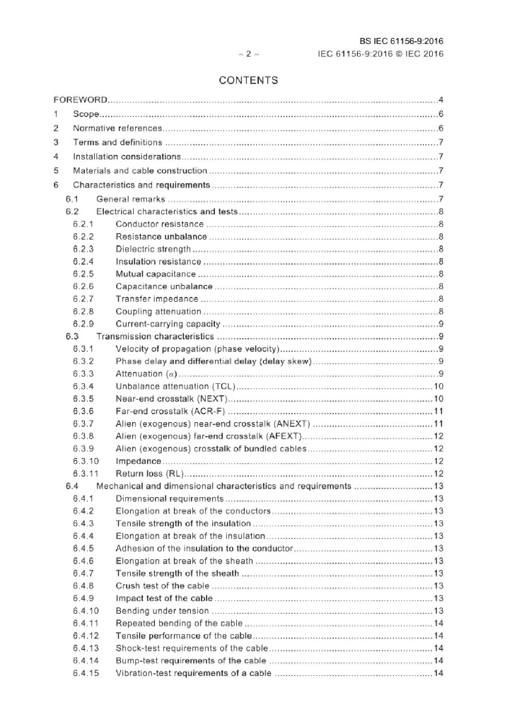 IEC 61156-9:2016 数字通信用对绞或星绞多芯对称电缆 第9部分 2GHz以下传输特性的主干电缆 分规范