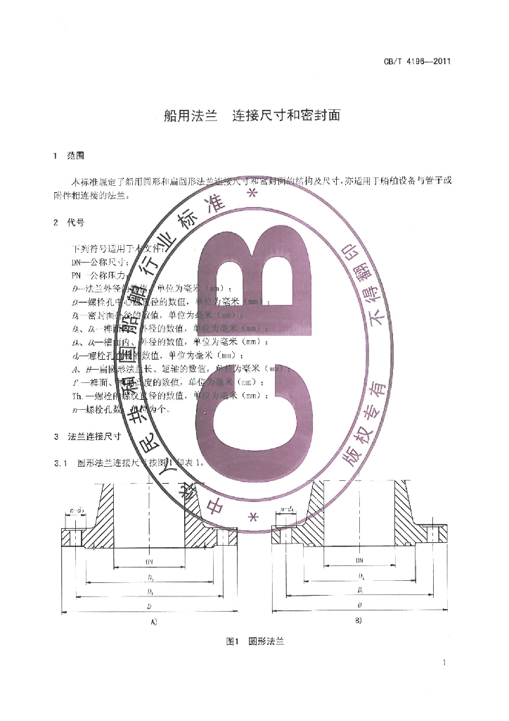 CB/T 4196-2011 船用法兰连接尺寸和密封面
