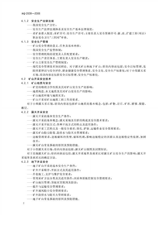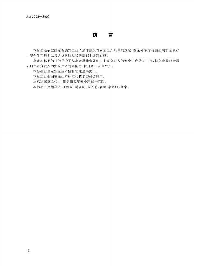 AQ/T 2008-2006 金属非金属矿山主要负责人安全生产培训大纲