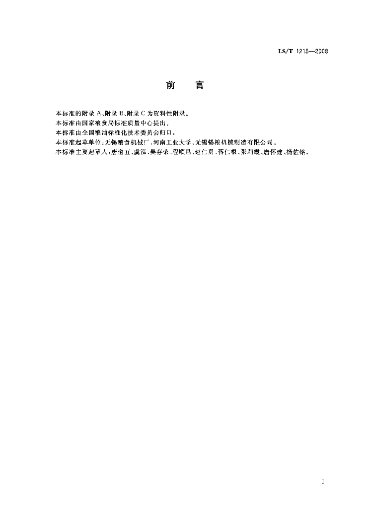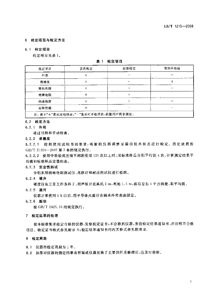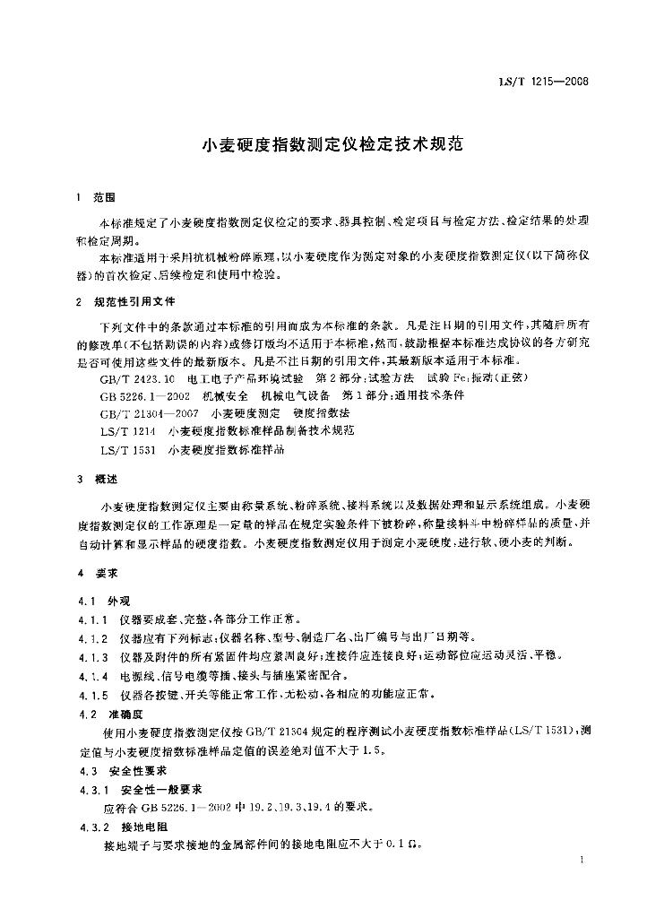 LS/T 1215-2008 小麦硬度指数测定仪检定技术规范