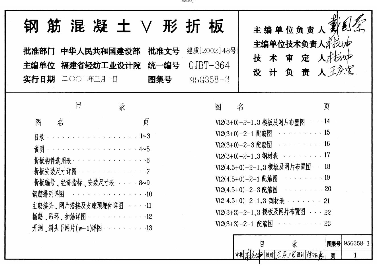 95G358-3 钢筋混凝土V形折板(悬挑折板)图集