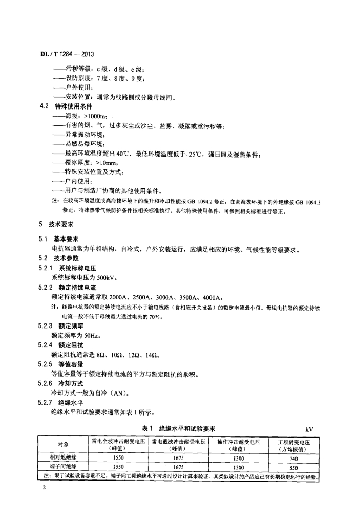 DL/T 1284-2013 500kV干式空心限流电抗器使用导则