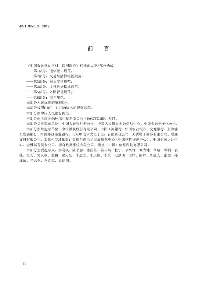 JR/T 0096.3-2012 中国金融移动支付 联网联合 第3部分:报文交换规范