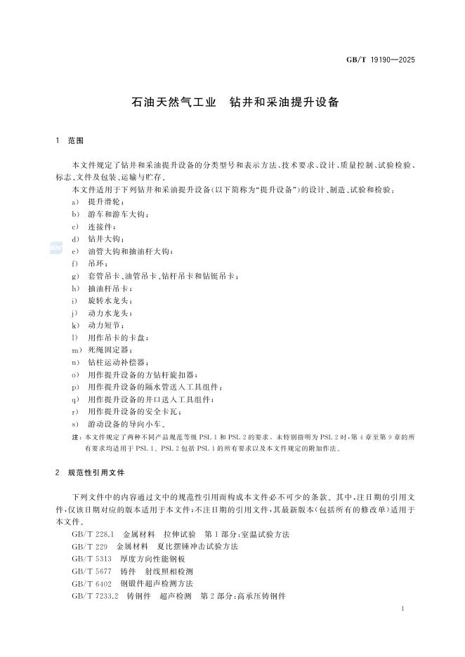 GB/T 19190-2025 石油天然气工业 钻井和采油提升设备