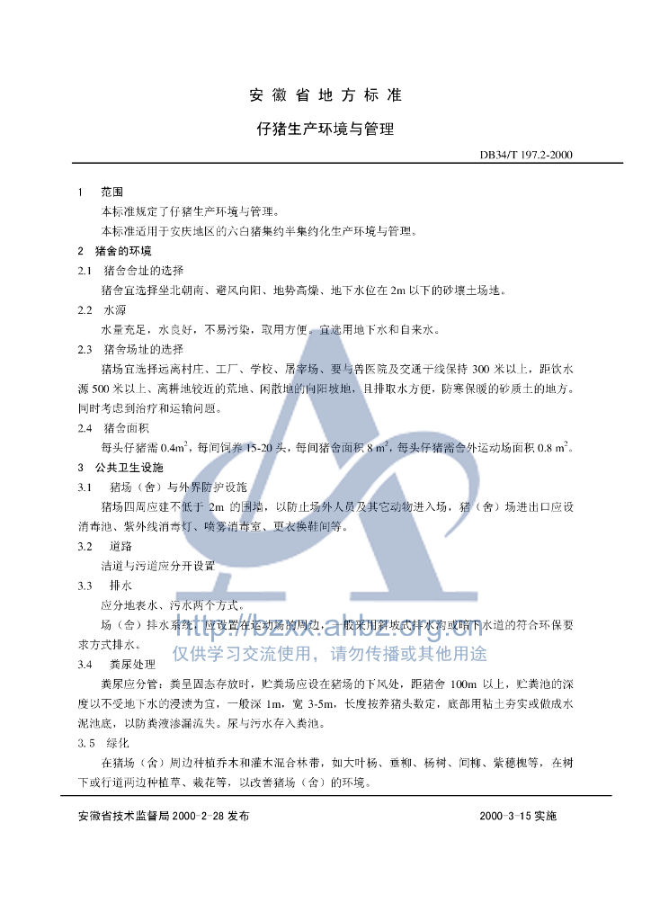 DB34/T 197.2-2000 仔猪生产环境与管理