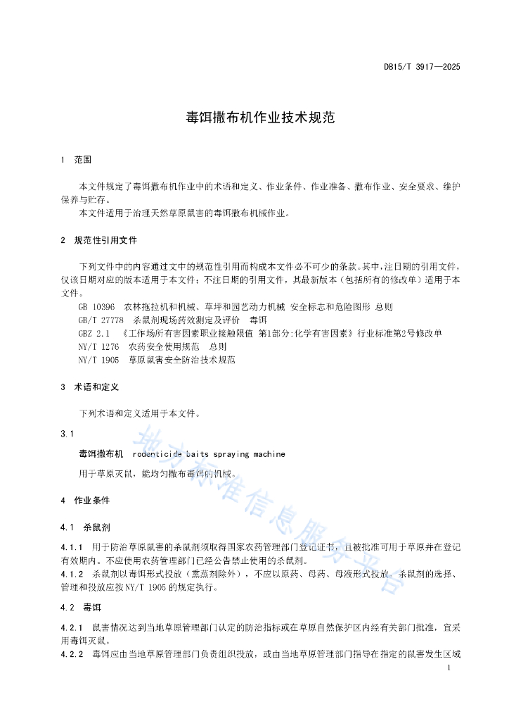 DB15/T 3917-2025 毒饵撒布机作业技术规范