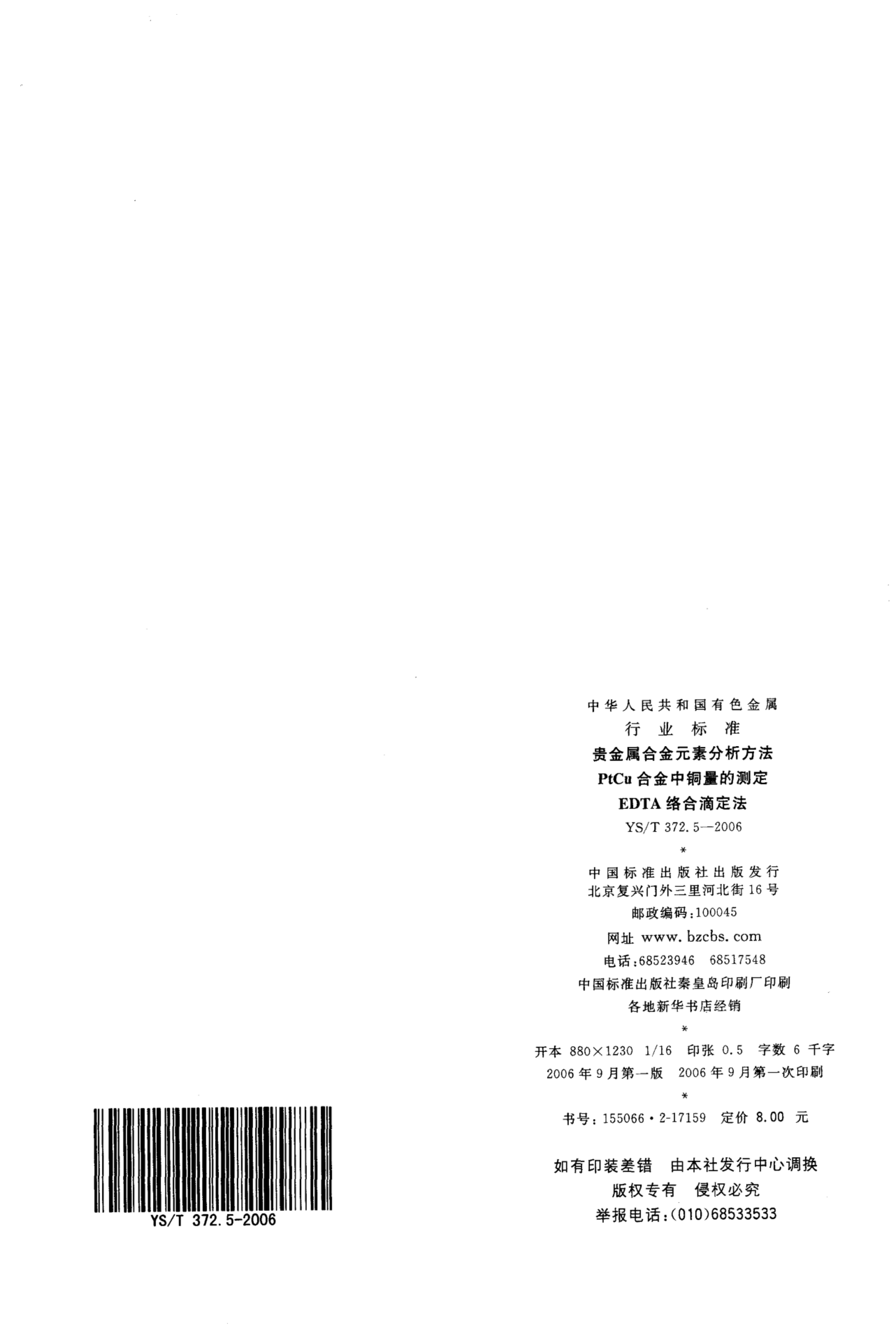YS/T 372.5-2006 贵金属合金元素分析方法 PtCu合金中铜量的测定EDTA络合滴定法