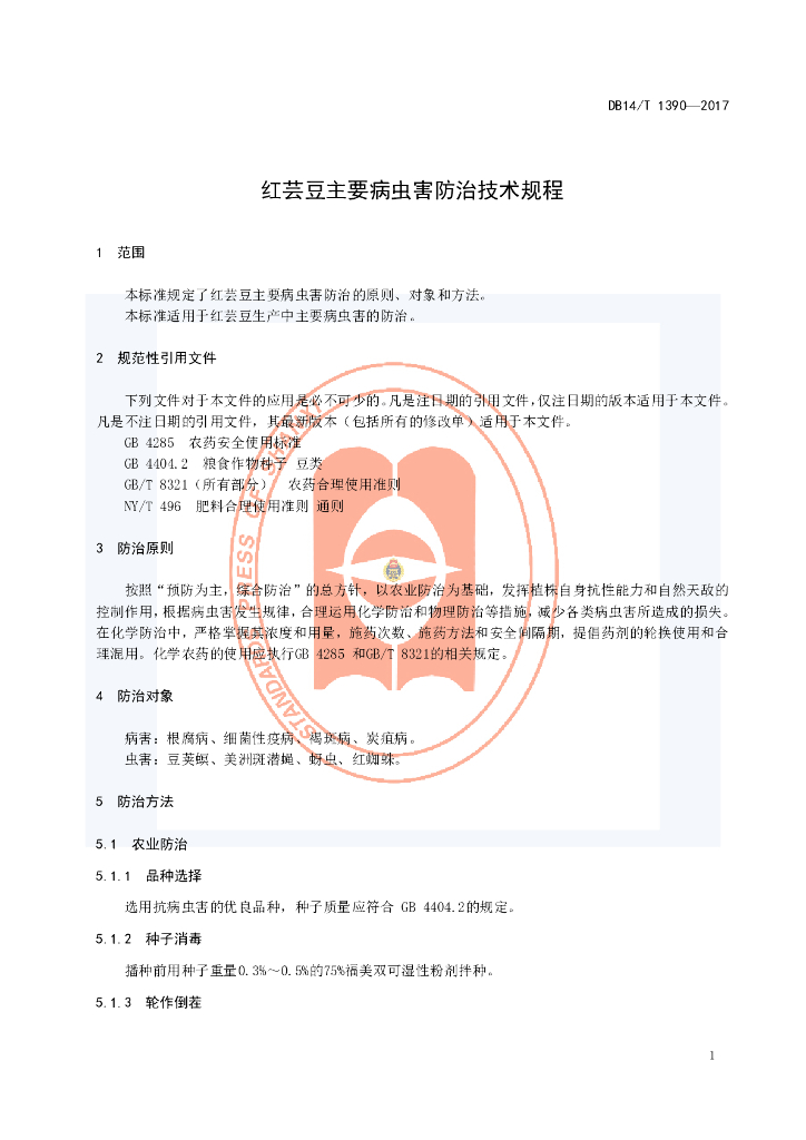 DB14/T 1390-2017 红芸豆主要病虫害防治技术规程