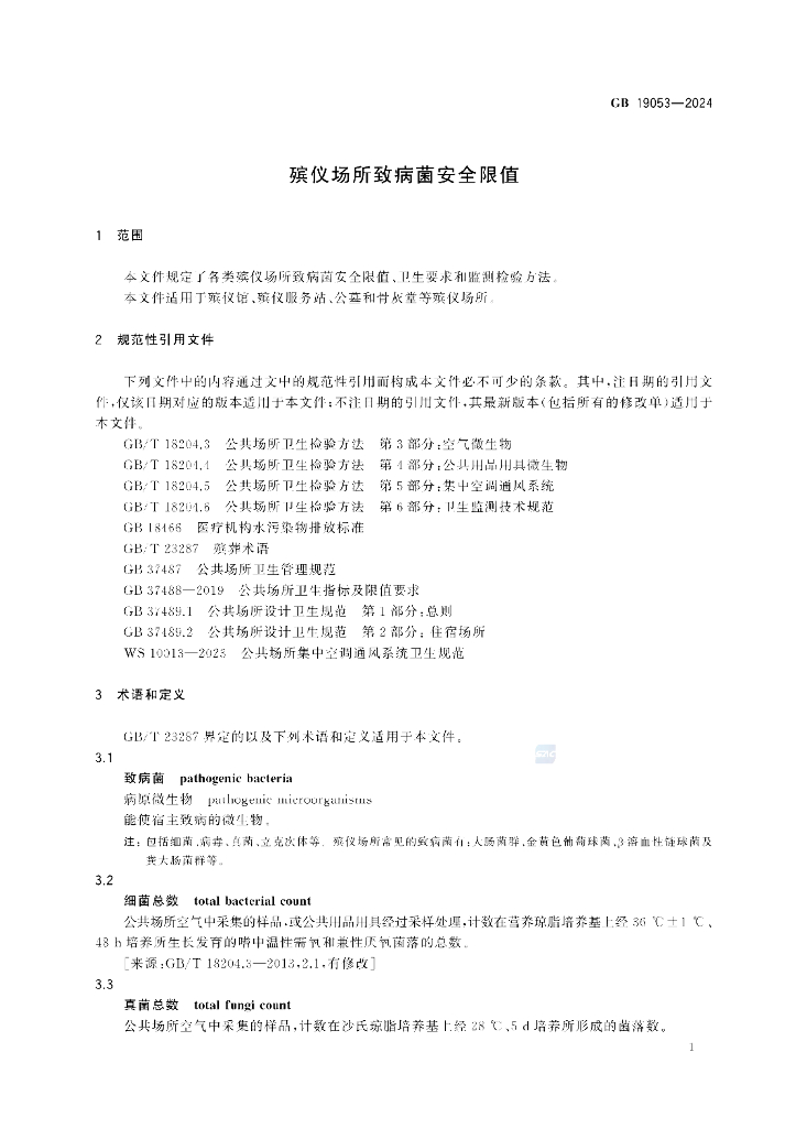GB 19053-2024 殡仪场所致病菌安全限值