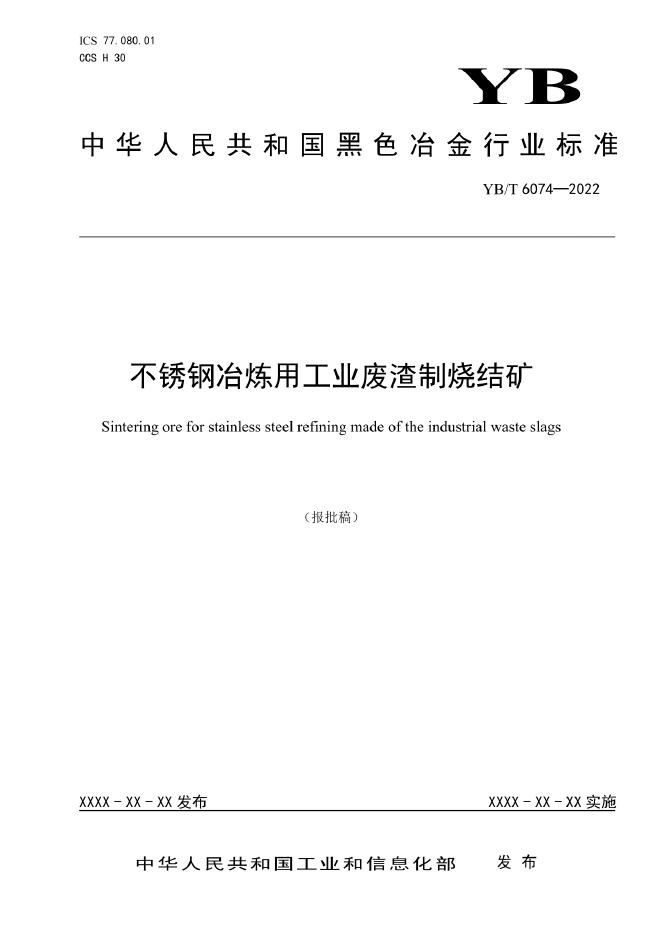 - 主管部门:工业和信息化部钢铁行业资源综合利用标准化工作组