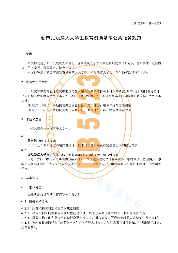 DB5223/T 28-2021 新市民残疾人大学生教育资助基本公共服务规范