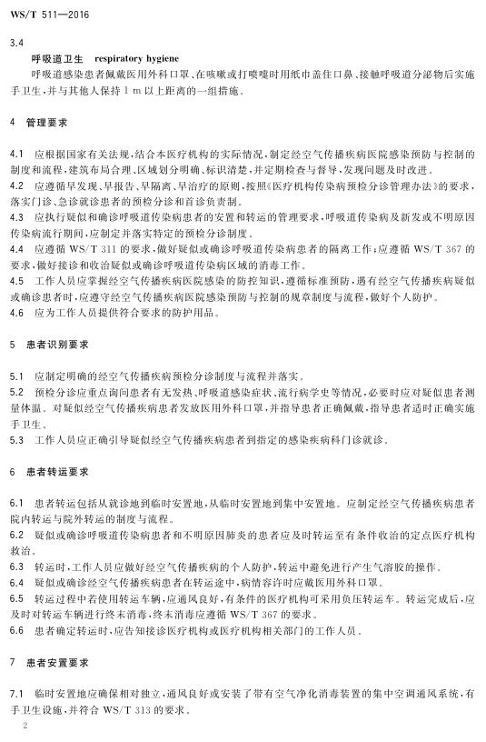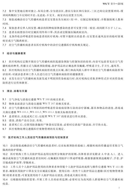 WS/T 511-2016 经空气传播疾病医院感染预防与控制规范