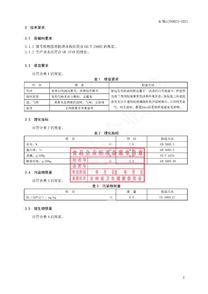 Q/MLGJ 0002S-2021 黑苓植物胶原粉