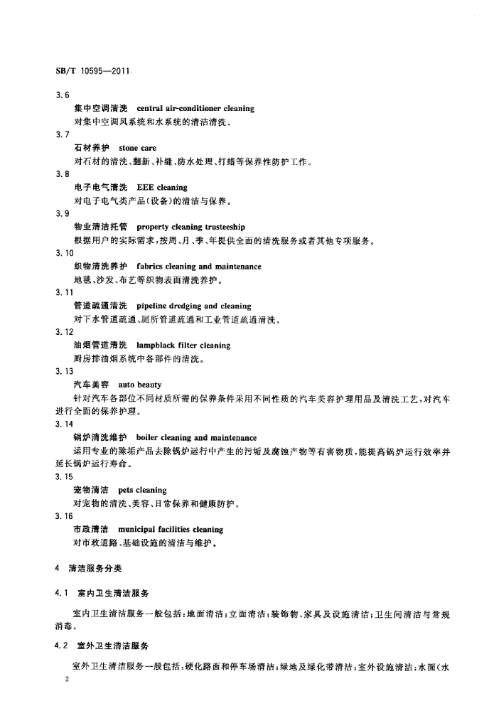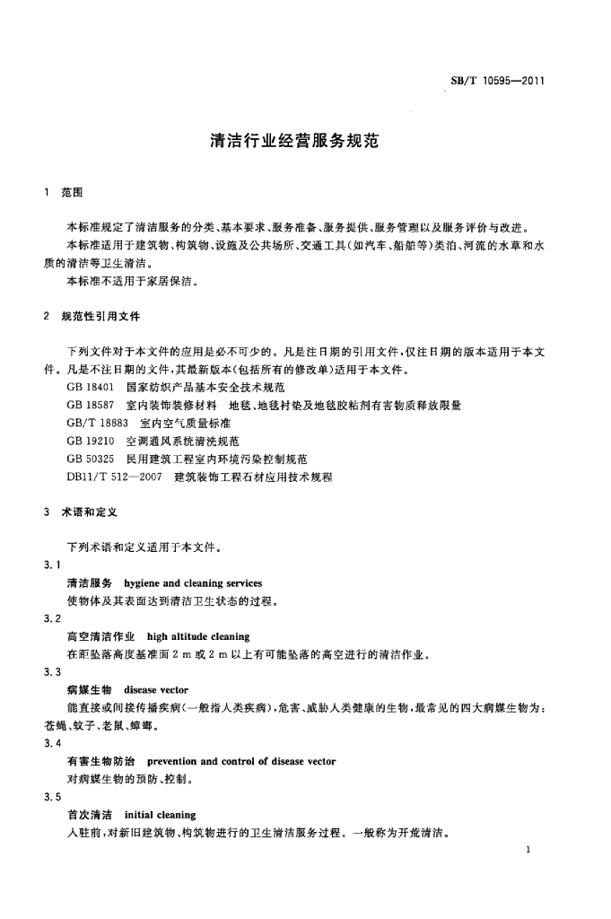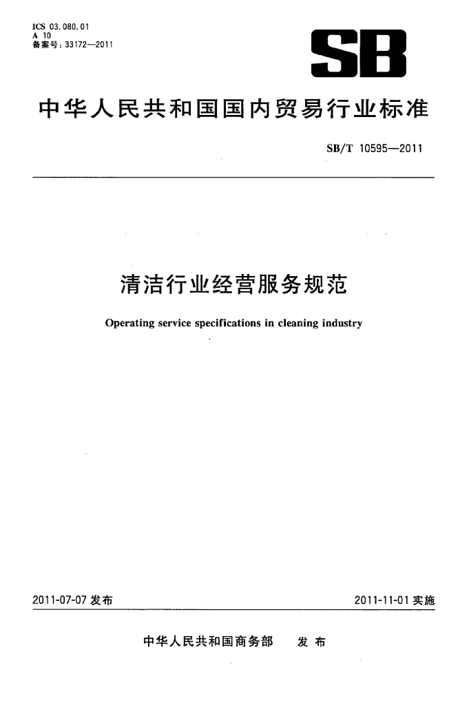 SB/T 10595-2011 清洁行业经营服务规范