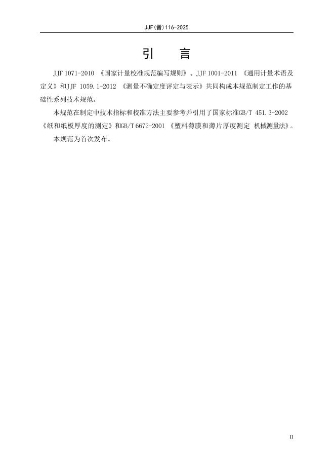 JJF(晋)116-2025 机械接触式电子测厚仪校准规范