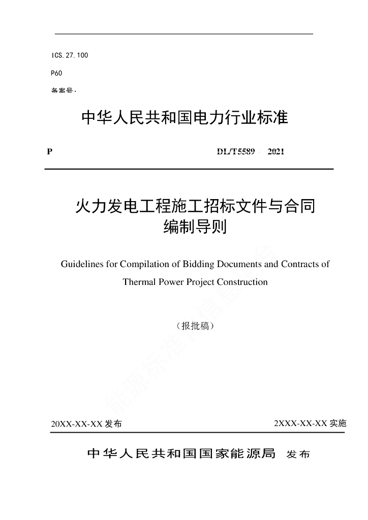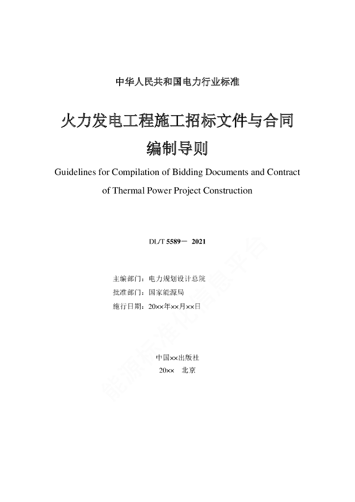DL/T 5589-2021 火力发电工程施工招标文件与合同编制导则