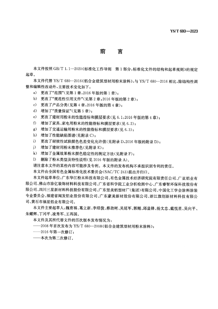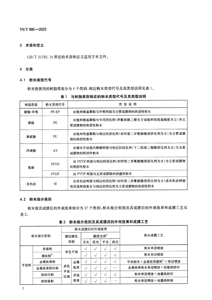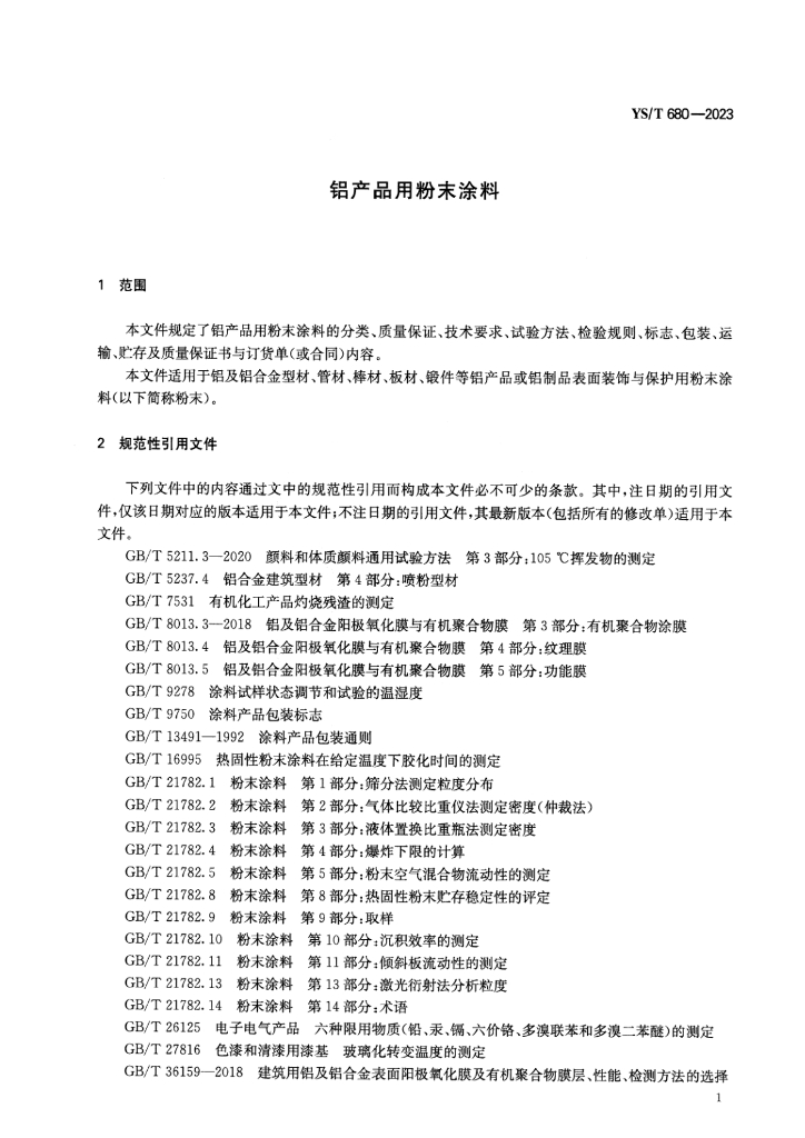 YS/T 680-2023 铝产品用粉末涂料