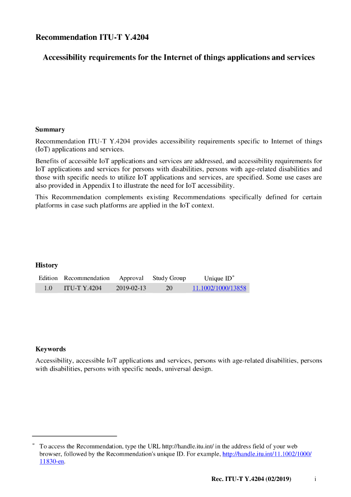 ITU-T Y.4204-2019 物联网应用和服务的可访问性要求