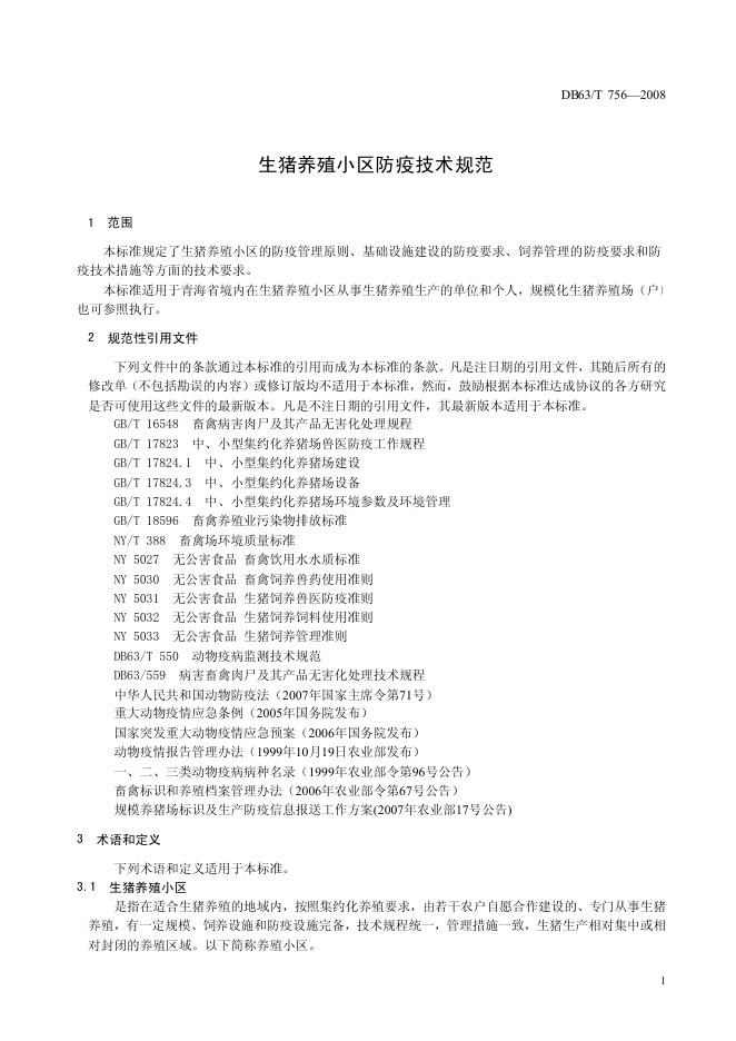 DB63/T 756-2008 生猪养殖小区防疫技术规范