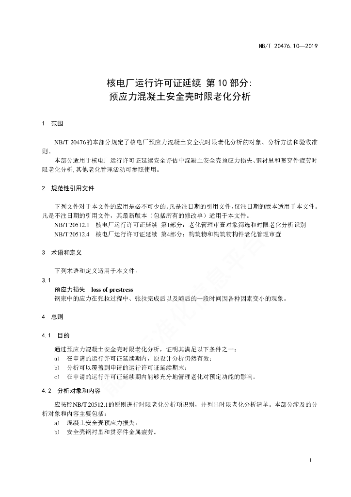NB/T 20476.10-2019 核电厂运行许可证延续 第10部分:预应力混凝土安全壳时限老化分析