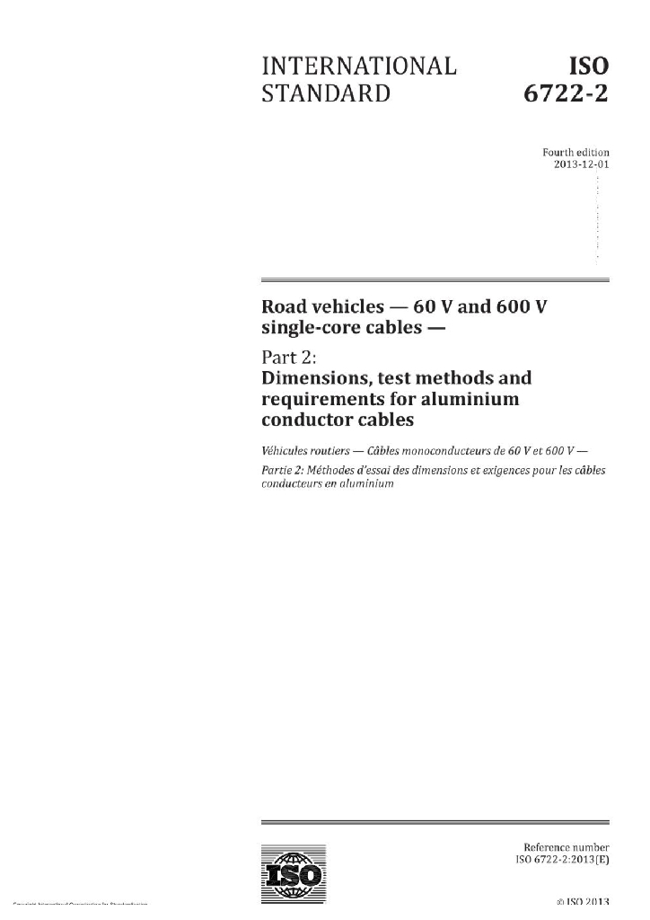 ISO 6722-2-2013 道路车辆-60V和600V单芯电缆