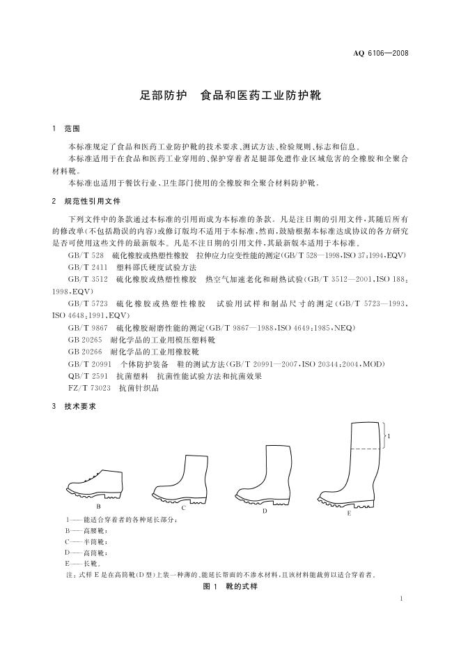 AQ 6106-2008 足部防护 食品和医药工业防护靴