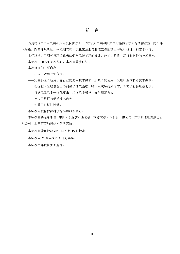 HJ 178-2018 烟气循环流化床法烟气脱硫工程通用技术规范
