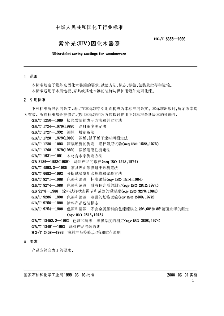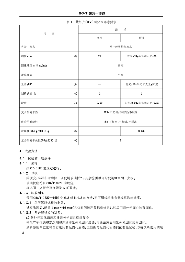 HG/T 3655-1999 紫外光(UV)固化木器漆