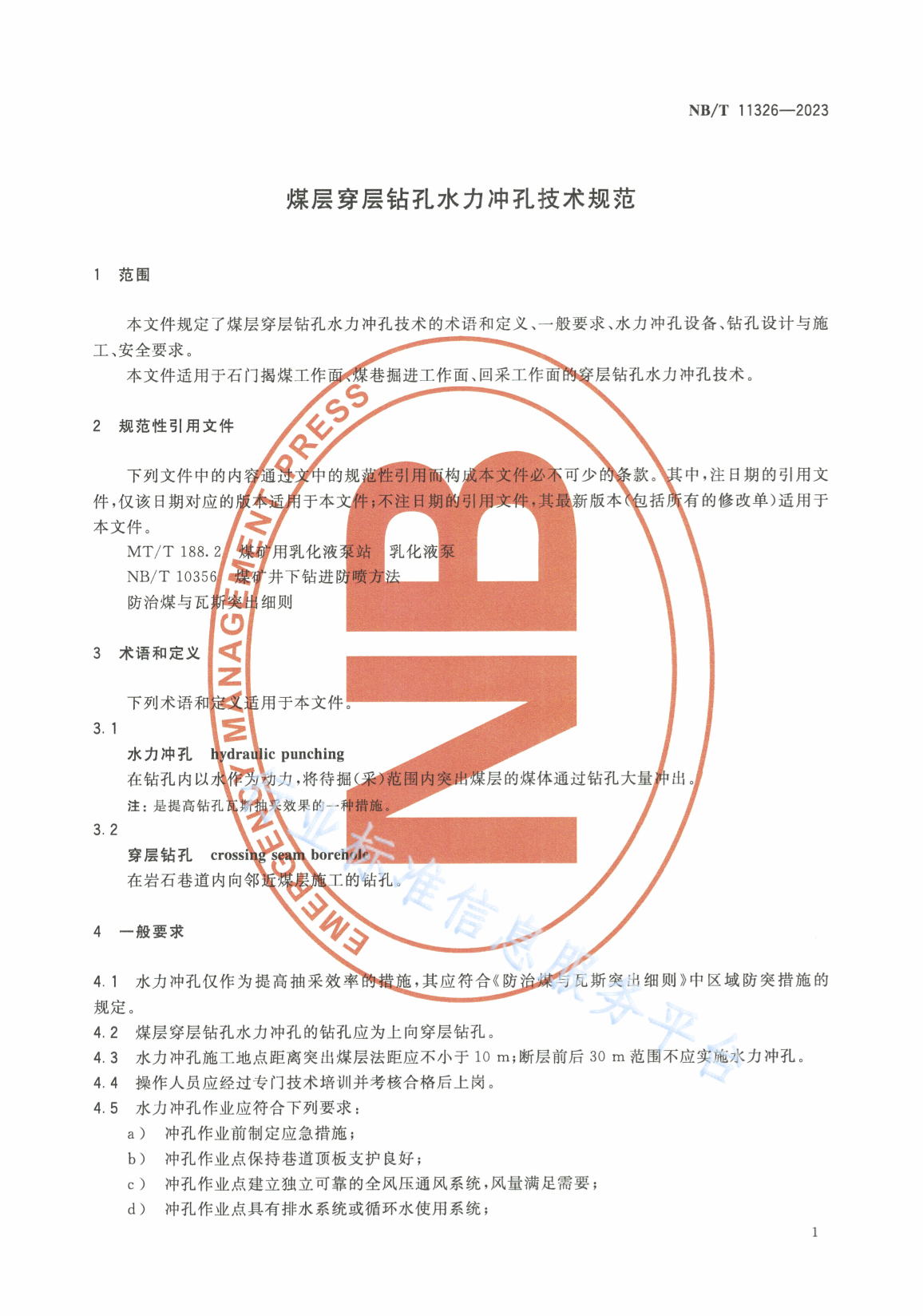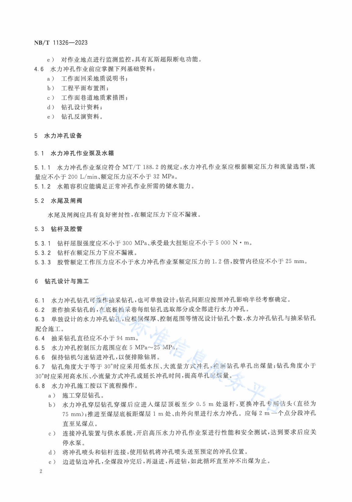 NB/T 11326-2023 煤层穿层钻孔水力冲孔技术规范