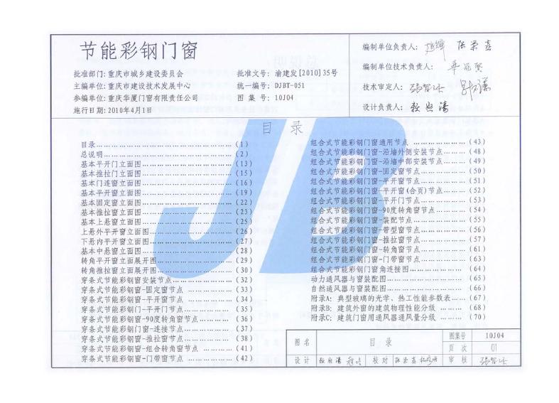 渝10J04 节能彩钢门窗图集(DJBT-051)