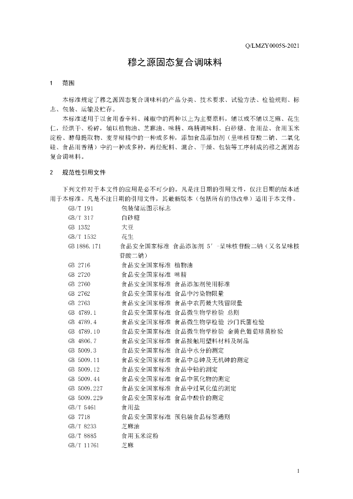 Q/LMZY 0005S-2021 穆之源固态复合调味料