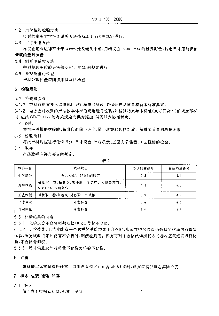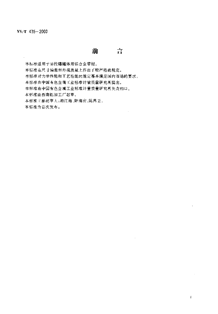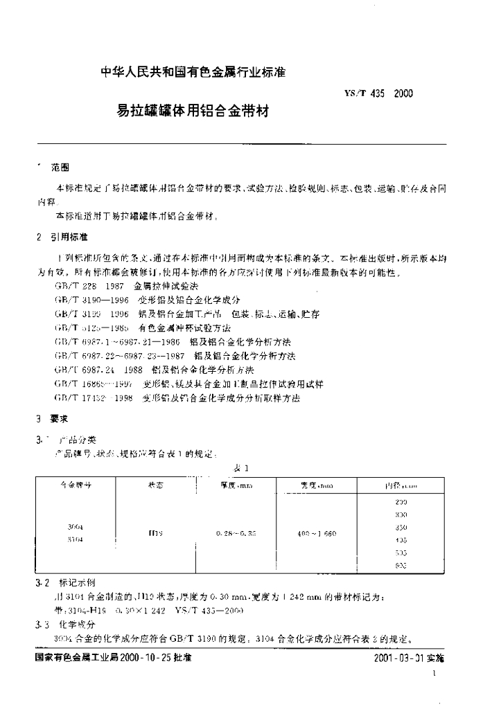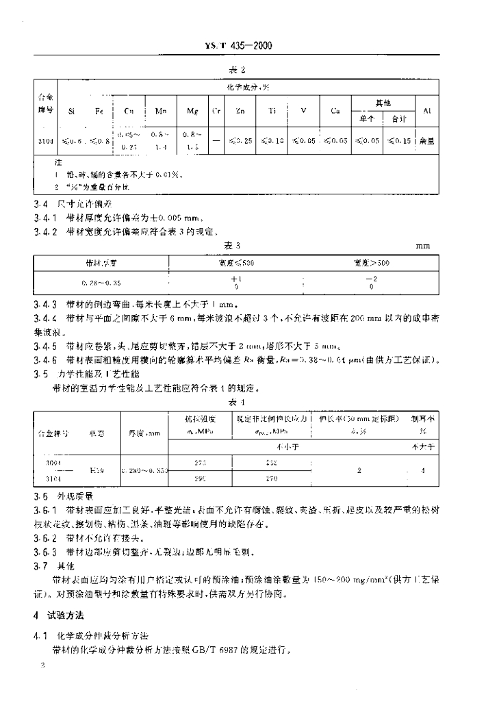 YS/T 435-2000 易拉罐罐体用铝合金带材