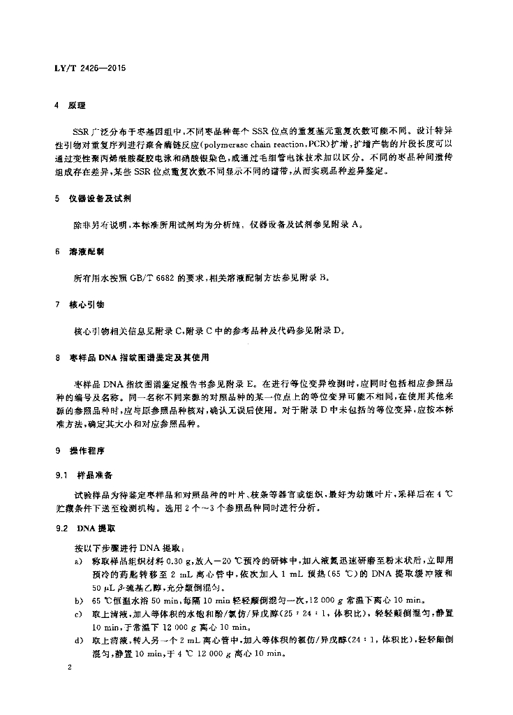 LY/T 2426-2015 枣品种鉴定技术规程SSR分子标记法