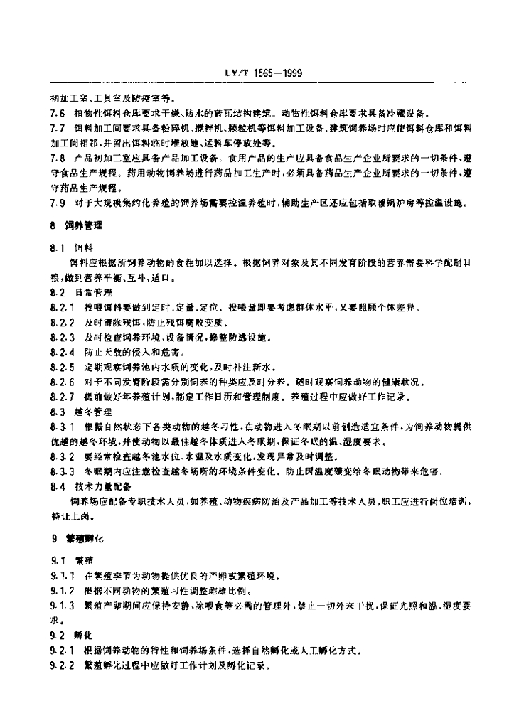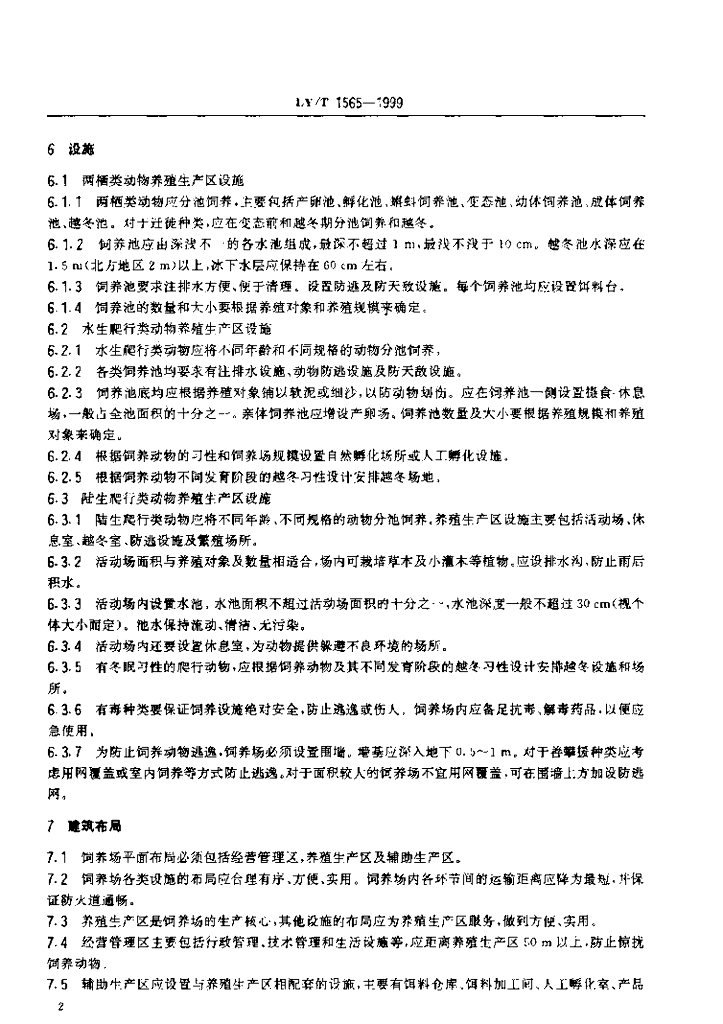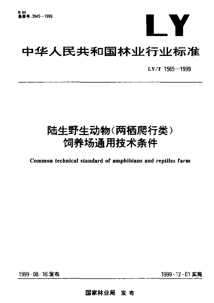 LY/T 1565-1999 陆生野生动物(两栖爬行类)饲养场通用技术条件