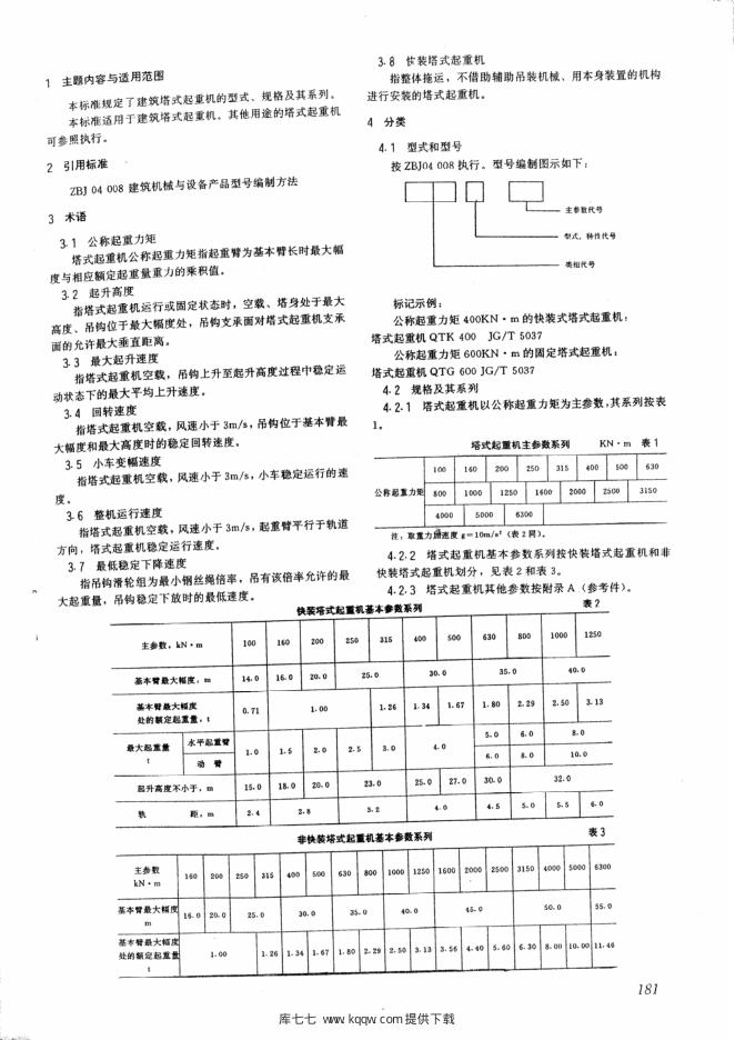 JG/T 5037-1993 塔式起重机分类