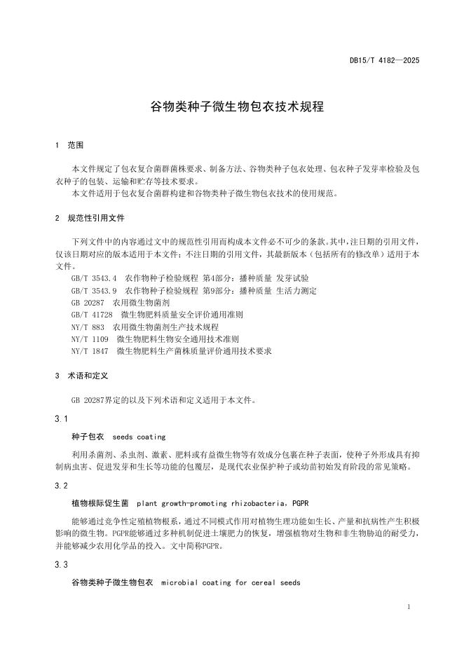 DB15/T 4182-2025 谷物类种子微生物包衣技术规程