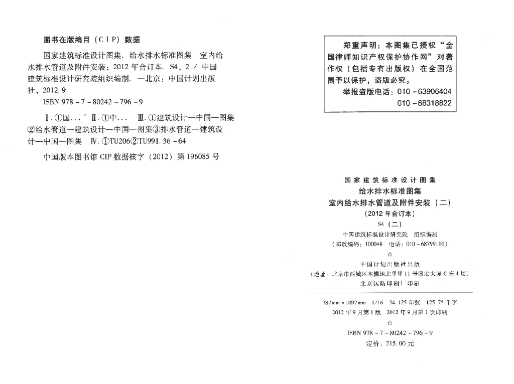 S4(二) 给水排水标准图集 室内给水排水管道及附件安装(2012年合订本)